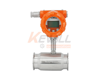 渦輪的轉速通過裝在機殼外的傳感線圈來檢測.當渦輪葉片切割由殼體內永久磁鋼產生的磁力線時,就會引起傳感線圈中的磁通變化.傳感線圈將檢測到的磁通周期變化信號送入前置放大器,對信號進行放大、整形,產生與流速成正比的脈沖信號,送入單位換算與流量積算電路得到并顯示累積流量值;同時亦將脈沖信號送入頻率電流轉換電路,將脈沖信號轉換成模擬電流量,進而指示瞬時流量值。