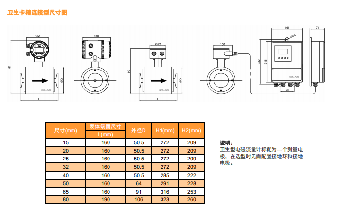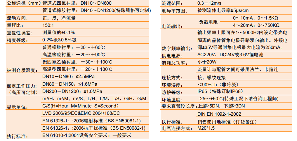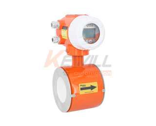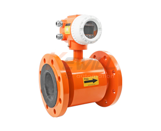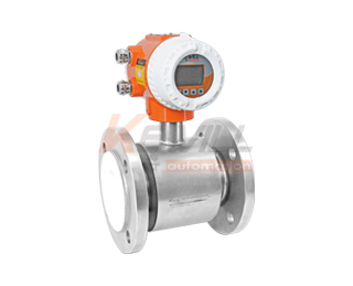 測(cè)量流量時(shí),導(dǎo)電性液體以速度V流過(guò)垂直于流量方向的磁場(chǎng),導(dǎo)電性液體的流動(dòng)感應(yīng)出一個(gè)與平均流速成正比的電壓,其感應(yīng)電壓信號(hào)通過(guò)二個(gè)或二個(gè)以上與液體直接接觸的感應(yīng)電極檢出,并通過(guò)電纜送至轉(zhuǎn)換器通過(guò)其智能化處理,實(shí)現(xiàn)流體瞬時(shí)流量、積累流量的顯示及流量數(shù)據(jù)與控制系統(tǒng)之間的通訊。測(cè)量管內(nèi)無(wú)活動(dòng)及阻流部件,因此幾乎沒(méi)有壓力損失,并且有很高的可靠性。